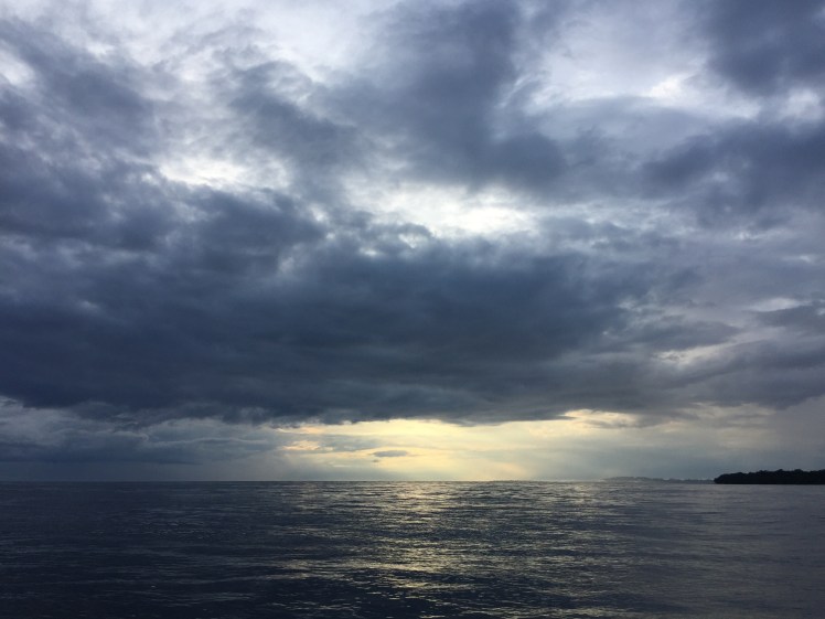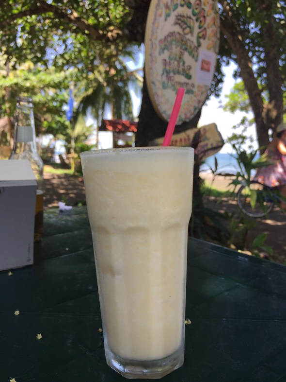 We decide to try to bake banana bread next. We ride Johnny’s scooter to the little store down the street. It’s called a soda, and is the type where it’s attached to someone’s house and you can’t walk inside, so you order things from a counter. The kind woman didn’t have any bicarbonato de sodio (baking soda) so we buy levadura en polvo (baking powder) instead. The finished product is more like a thick banana pancake, but it is still tasty. The power comes on as the sun sets and we sit to eat dinner. The bats stir, tiny ants search for crumbs, silverware continues to rust, our damp clothing from today’s swim still drapes the balcony rails. A coconut falls somewhere, with enough force to kill. A seed from a palm tree slams the metal roof and the rain gutter bends just a little more. Light fades, eyes become passive and our ears tune in. A wave of new sounds wash over the land – the nocturnal sea has returned.