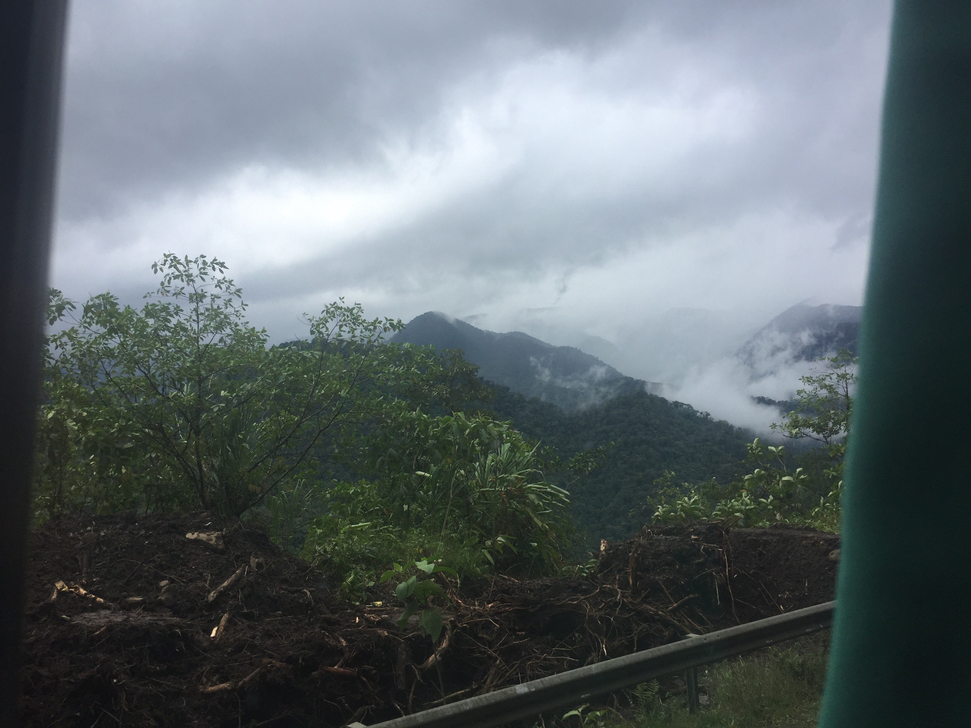 We make several stops picking up more passengers along the way. People have to stand. Our tires screech and people stretch their necks to look around. No one knows why, maybe someone cut us off. The dad assures his children and describes to them that they are smelling burnt rubber. No one wants to die, even if you’re from another country. Silly to say, yes, and to me it is painfully obvious. We are all human. But I wish people back home would understand this – understand how the rest of the world lives and works. I slouch more, let my legs rest as they please. We finally make it to the windy jungle road.