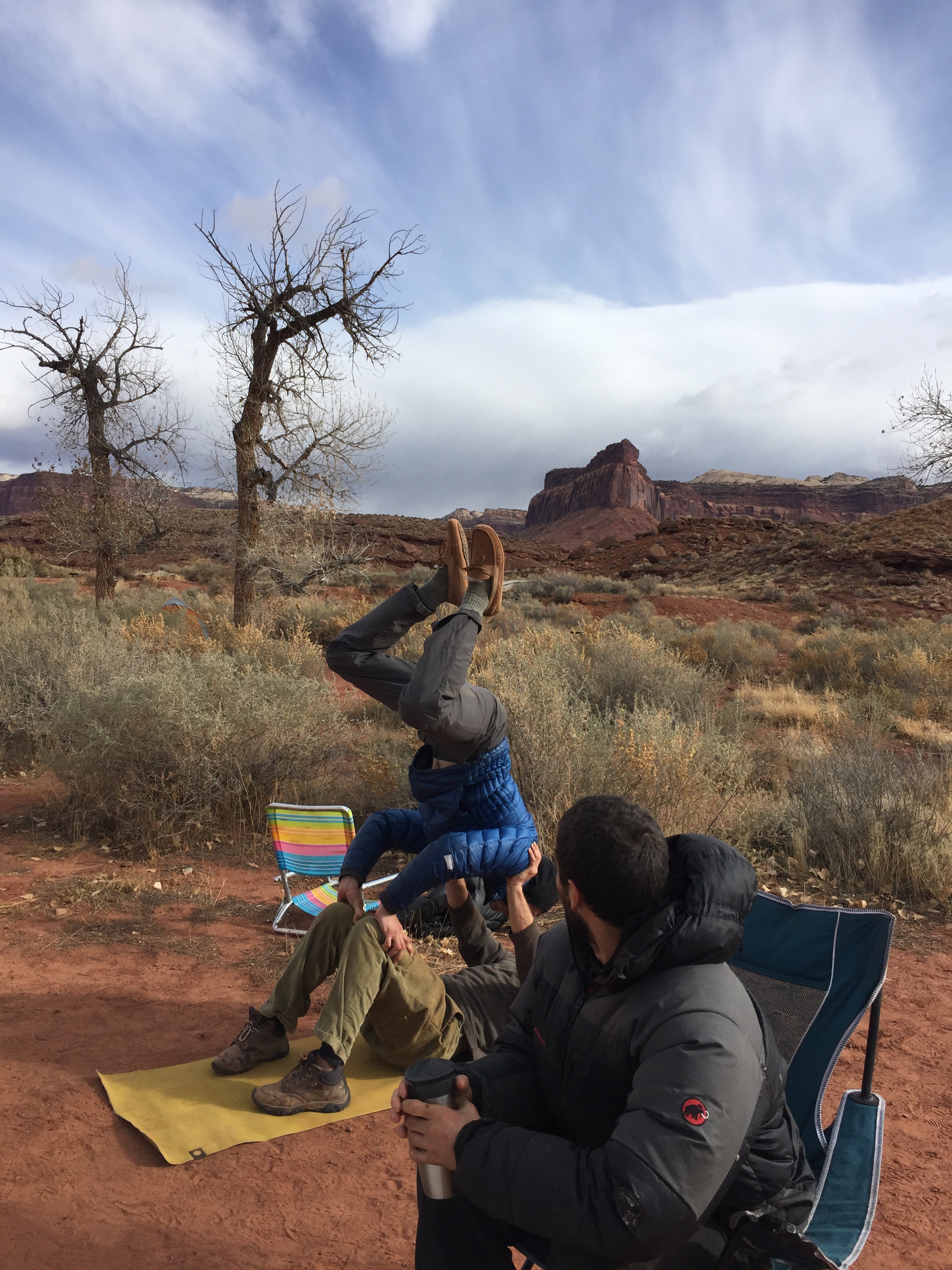 The Wingate walls light up, glow auburn, and we sit with the sun, trace the stories present in our gobies. My body is telling me to rest. Weeks of throwing limbs into these cracks, two years of dreaming myself back here: the morning feels sincere. But I am different now, this Creeksgiving unlike the last; no longer the lone traveler heading east in search of home.