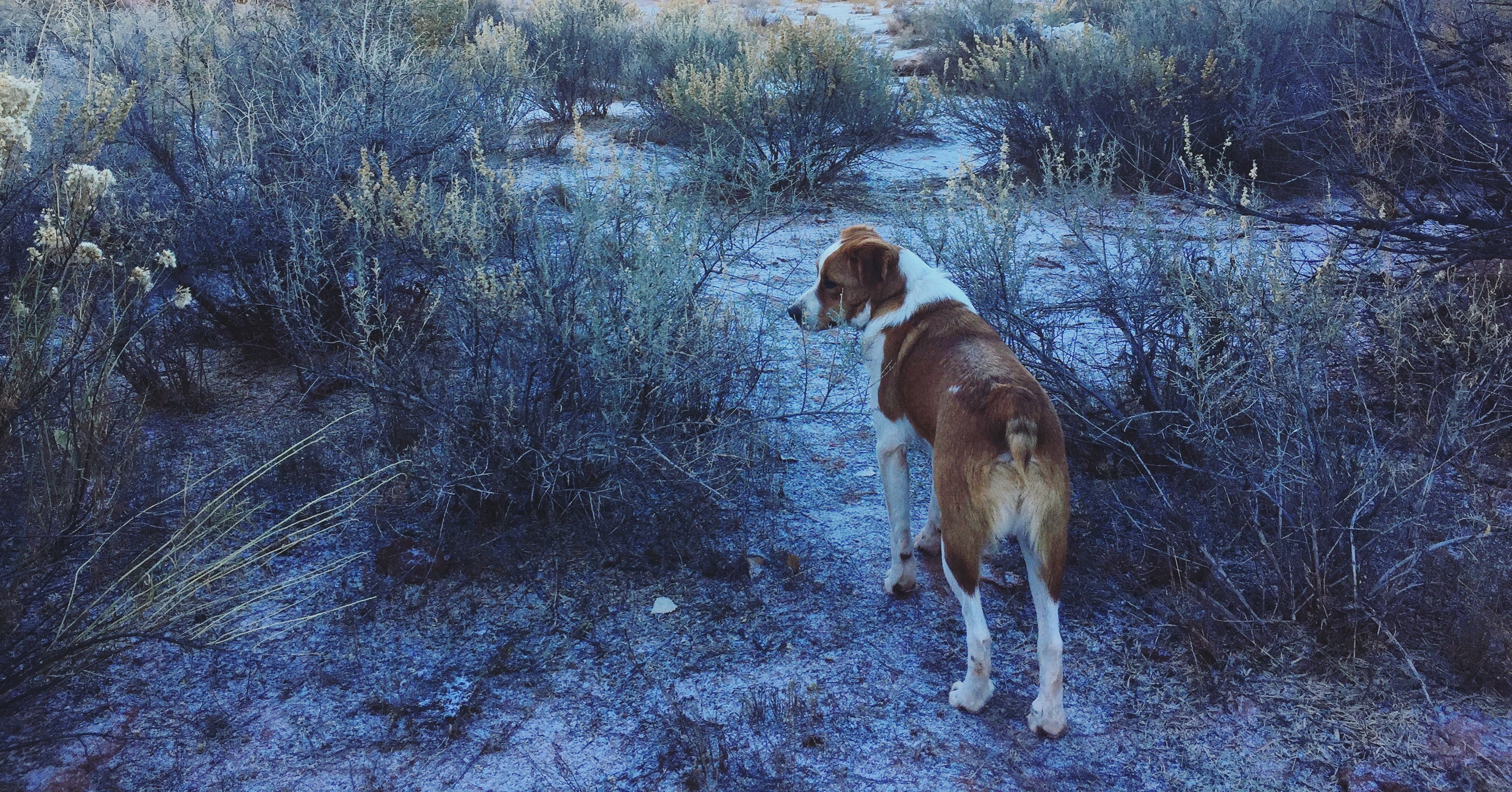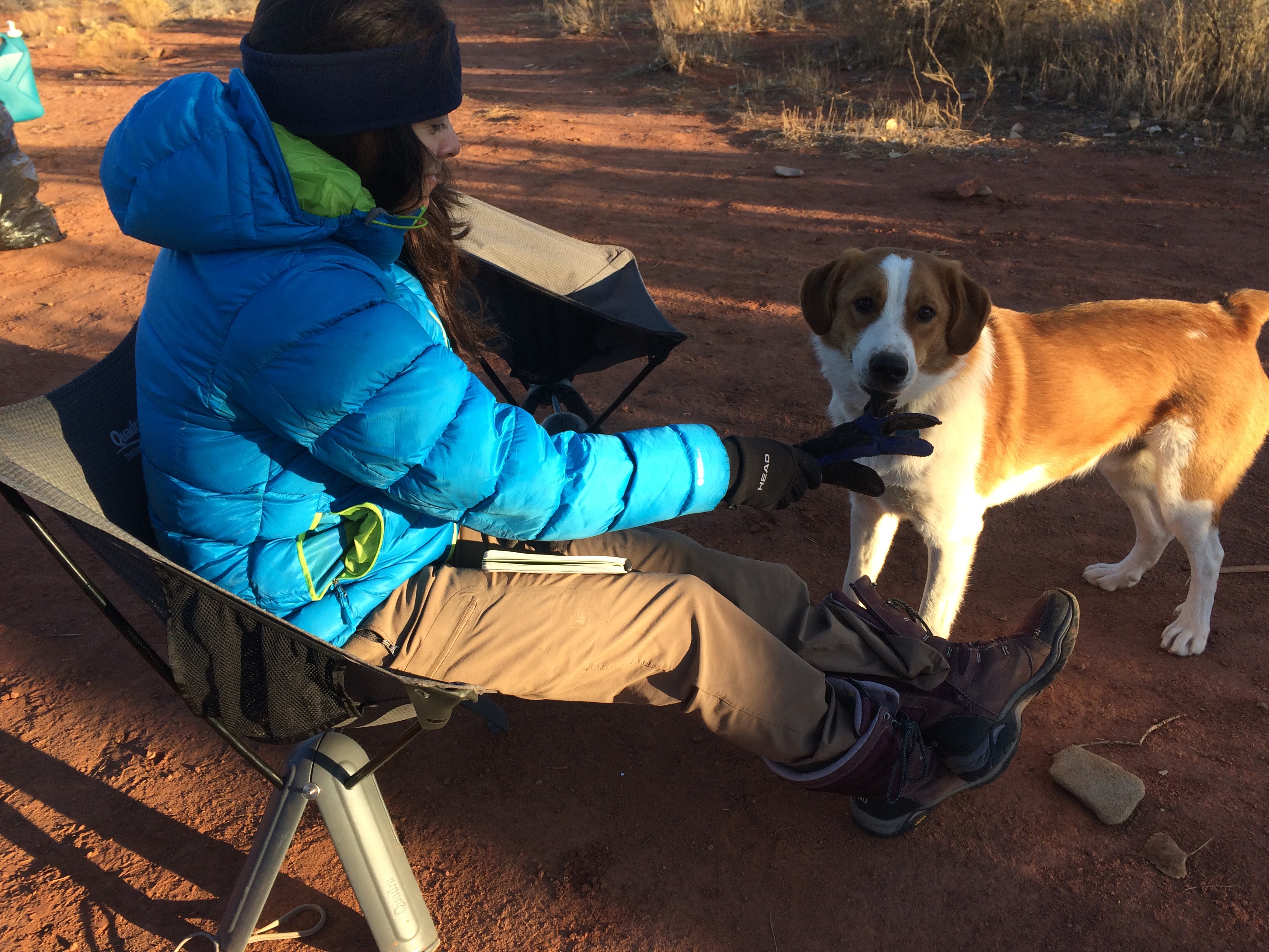 In a matter of minutes, fifteen people are gnawing and hovering the table scraps, dishes scraped, bits of food having rained the sand. The dogs bound and dart, sniffing, begging, excitedly barking, pecking their noses into the dark. This is pure gluttony in the desert—a celebration of community and enjoyment of what we’ve brought to share.