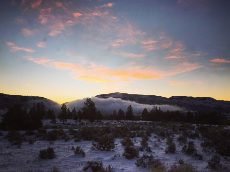 We wake to our last morning here, lit with snow. Dog prints roam the camp and Patrick’s footsteps meander to the shitter. I suppose you could say my body is finally used to the cold; it no longer feels so harsh. But it is cold enough to start a morning fire, and as we give rise to flame, the campground is once again quiet and empty. We feel alone at last. This is the silence I remember two years ago, that type where your ears can’t help but sing. No matter the world, here I am again, self-assessing ego. Placing myself into the foreground of the landscape when the opposite is very much the truth.