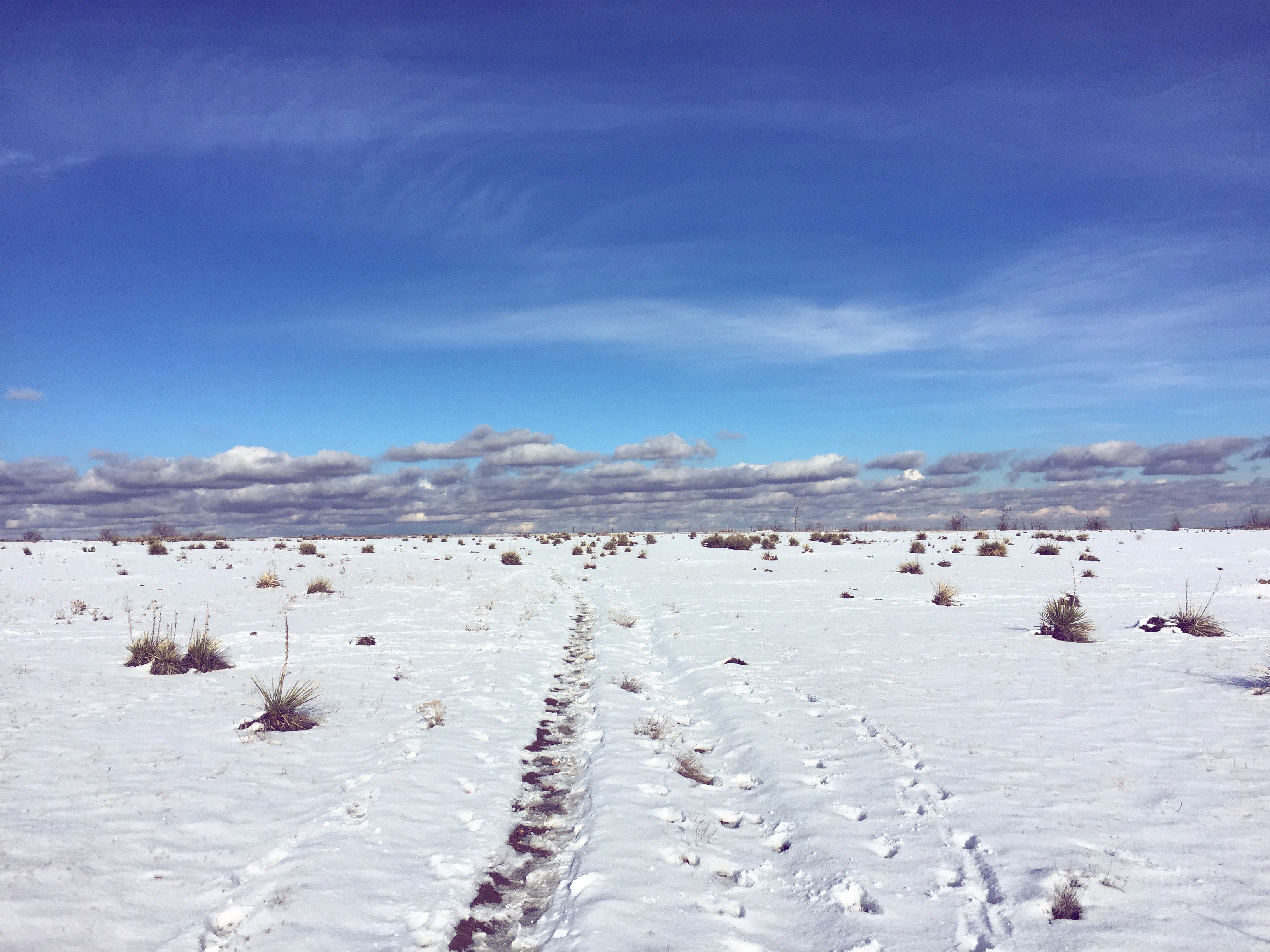 Is it the land I should speak of or the actions that are housed? Winter is when all traipses are given away by snow — the unseen but innate. Like the body and its processes. Suddenly there is a ridge across my fingernail or a new freckle tracking the sun across my shoulder. Suddenly there is a bank of snow by the saltbrush, pressed cloves of wild turkey feet. The whitetail deer are as still as the grass and the deer mice are as transient as a predator’s shadow. I am fogging up the window with my mouth and the sheep dig into the snow crust with their hooves.